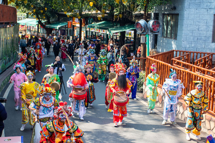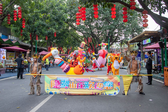 在隐贤山庄的新春活动中,游客们体验了一系列丰富多彩的传统节日庆典。从神秘的舞龙舞狮到充满地方特色的英歌舞,再到兼具创新与传统的电音三太子表演,每一项活动都让游客们感受到了浓浓的“年味”。还有新春庙街成为了游客体验传统美食和游乐的热点区域。传统小吃如打糍粑、炸油角、爆米花等美食让游客们大饱口福,而投壶、射箭等传统游艺则给予了游客互动的欢乐,使得每个人都能在新春的第一天留下美好的回忆。