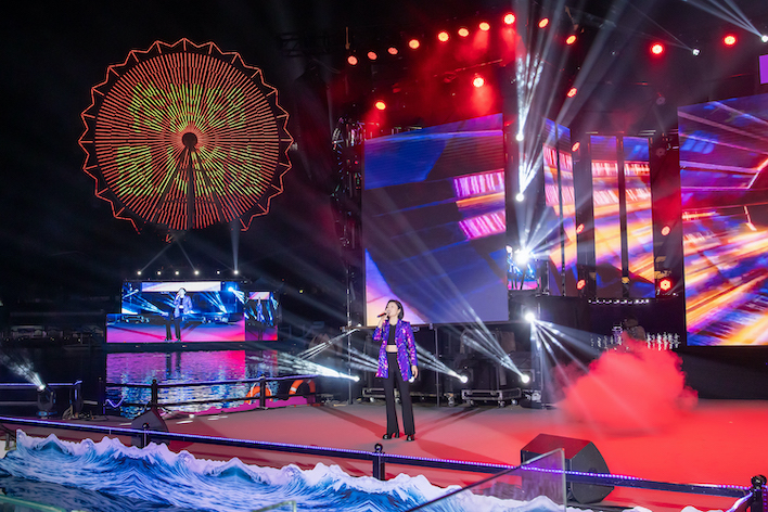 当夜幕降临,《蝶影》烟花水秀在每个夜晚为游客们呈现了一场视觉盛宴,将烟花的璀璨与水舞的优雅融为一体,为新年的到来增添了无限的浪漫和希望。随后隐贤山庄特别邀请了知名歌手许秋怡等明星的群星音乐会为游客献上新年的祝福,悠扬的音乐成为春节夜晚中最亮的星,为游客提供一个充满欢乐和祥和气氛的新春体验。