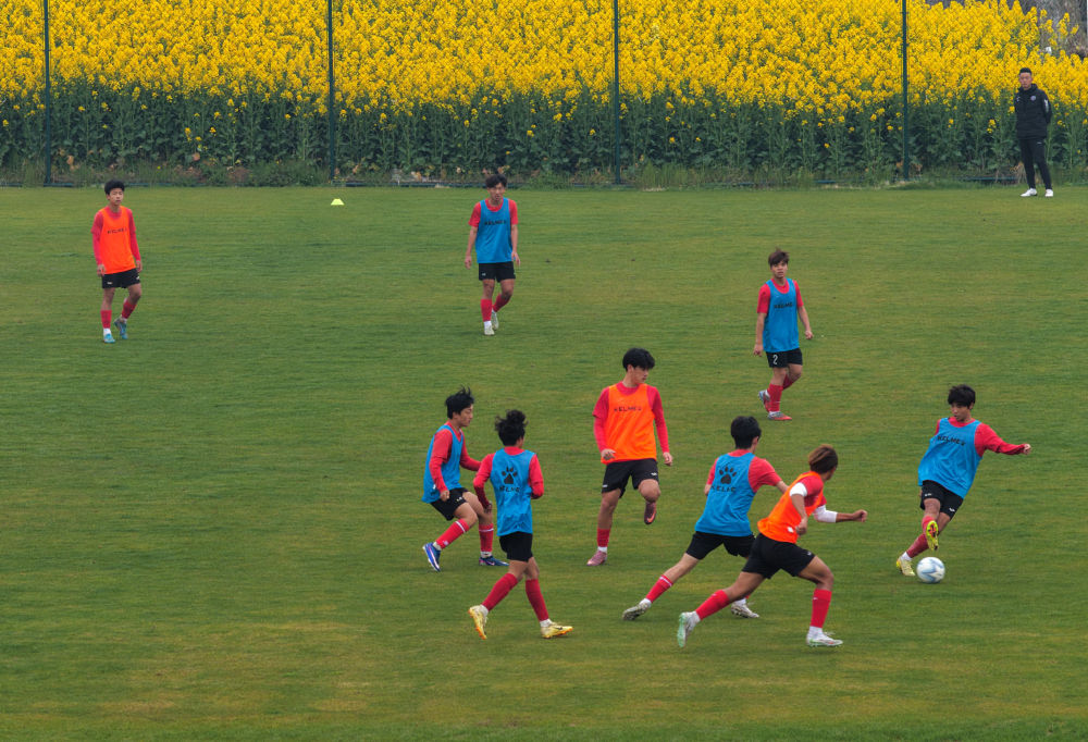 训练基地位于安徽省合肥市肥西县丰乐镇,进入基地,要经过大片正在盛开的油菜花,春天的气息扑面而来。这个地处乡野的足球青训基地,经历过寒冬之后,也正在迎来自己的春天。